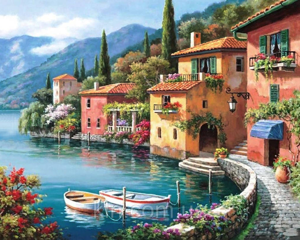 Алмазна вишивка на підрамнику Кафе біля берега моря 50 х 40 см (арт. TN1103)